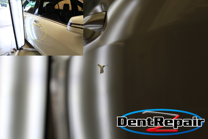 写真は右フロントドアのへこみです。ガラスを下げて何とかデントリペアツールが届いて、かなり難儀しましたが満足していただけました。