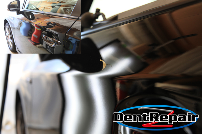 さて今日のデントリペアのご紹介は、リアクォーターのへこみとフロントドアのへこみ修理です。